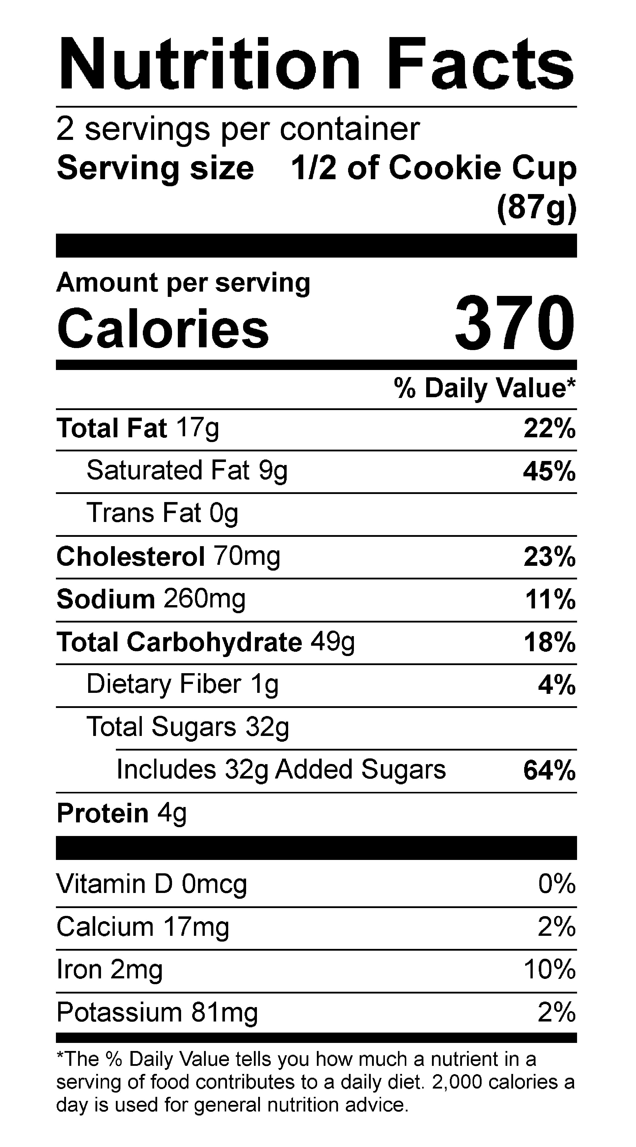 Contains egg, milk, and wheat. Produced in an environment that uses peanuts, tree nuts, soy, milk, and eggs.