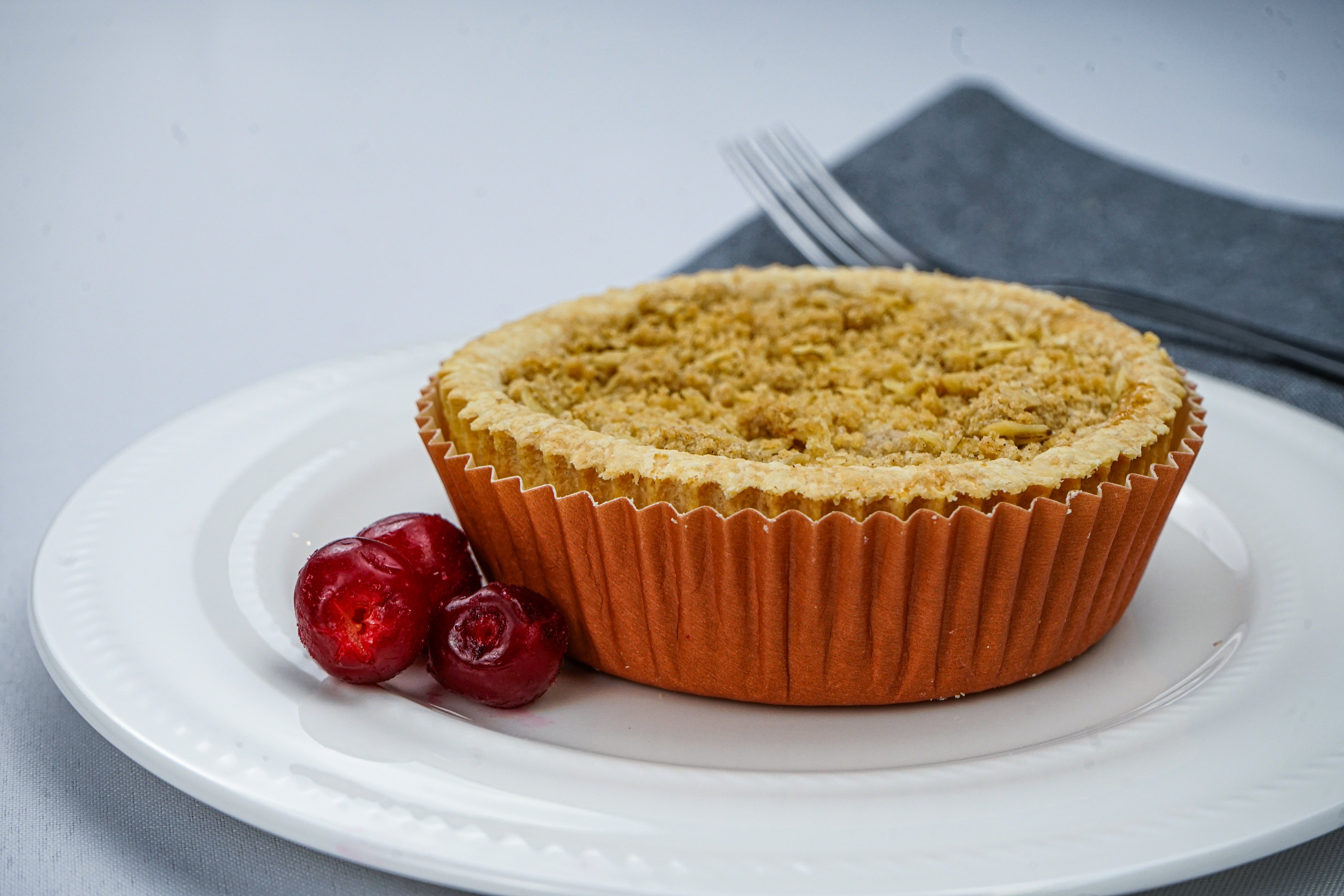 A flaky crust with tart, sweet cherry filling, and crunchy oat streusel. Perfect on its own or paired with vanilla ice cream.