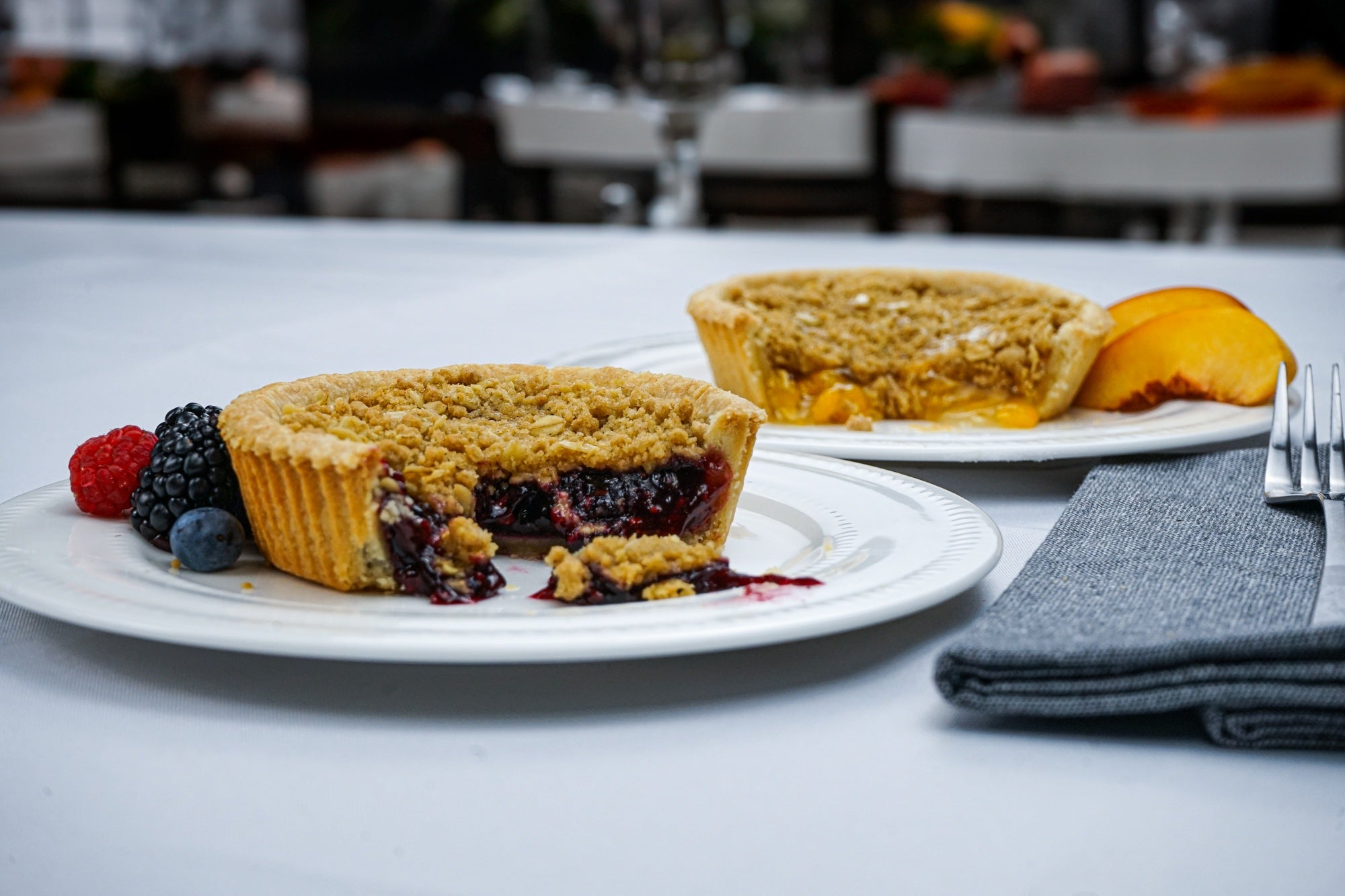 A flaky, buttery crust filled with sweet, tangy peaches sourced from the finest orchards for ultimate freshness and flavor.