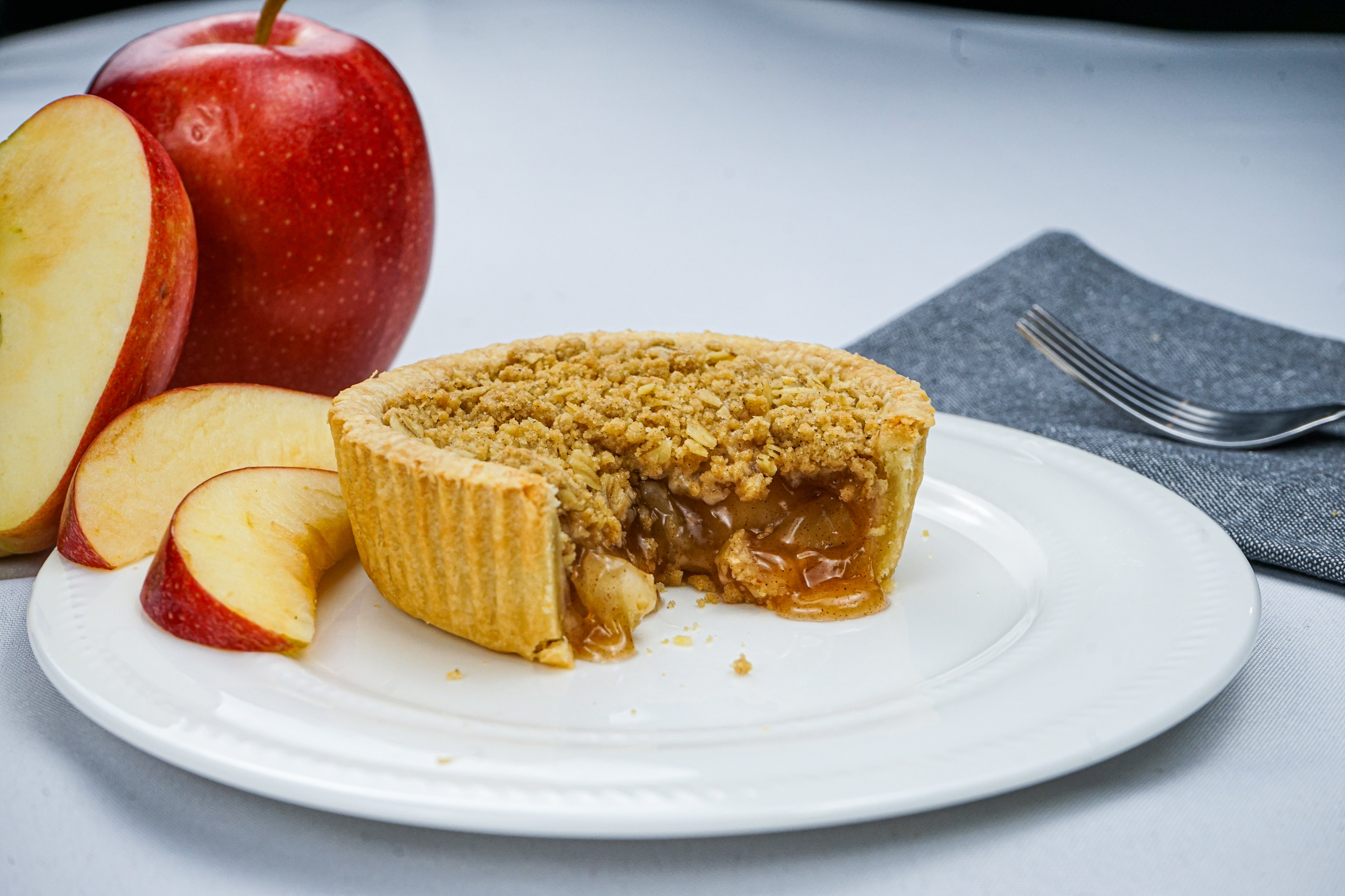 Tender, cinnamon-spiced apples in a flaky, golden-brown crust, topped with our oat streusel for a perfect balance of sweetness and warmth.